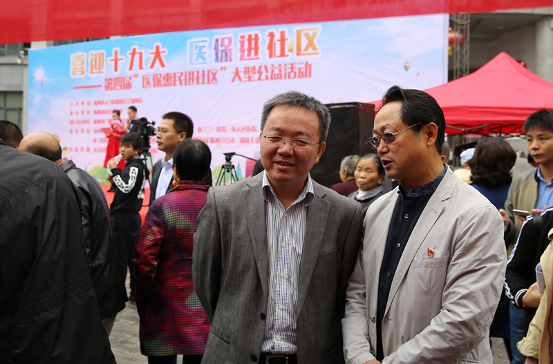 10月20日,由株洲市人力资源和社会保障局主办的我市第四届“医保惠民进社区”公益活动在天元区泰山街道办事处前坪启动。市委常委、常务副市长何剑波,市人民政府副市长杨胜跃,高新区工委书记、天元区区委书记周建光等领导出席启动仪式。