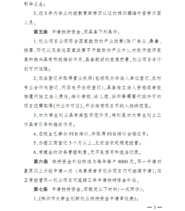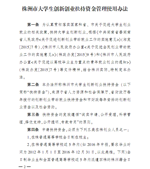 关于印发《株洲市大学生创新创业扶持资金管理使用办法》的通知