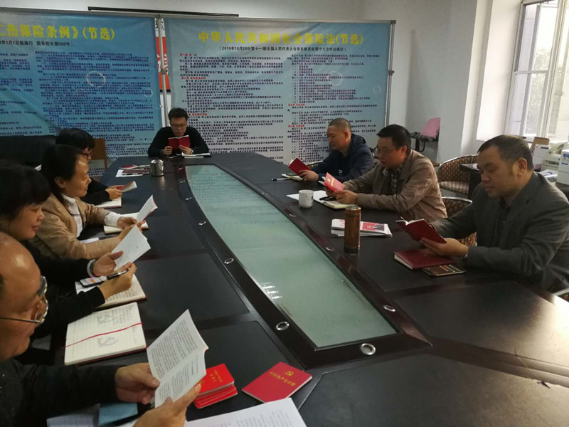 (市工伤处党支部开展“学习十九大精神,发放新版党章”主题党日活动)