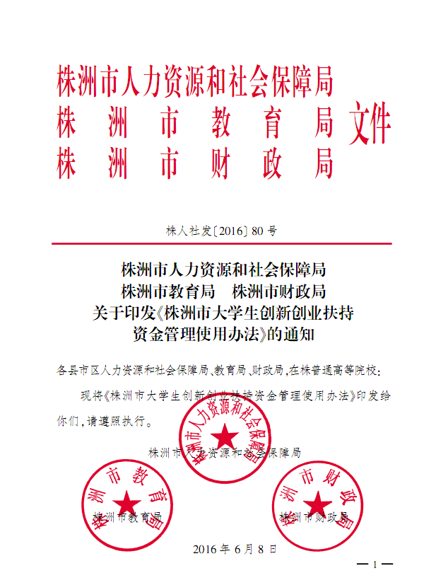 关于印发《株洲市大学生创新创业扶持资金管理使用办法》的通知